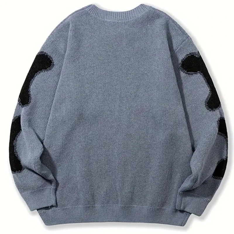 Retro Oversized Skeleton Bone Print Vintage Knitted Sweater